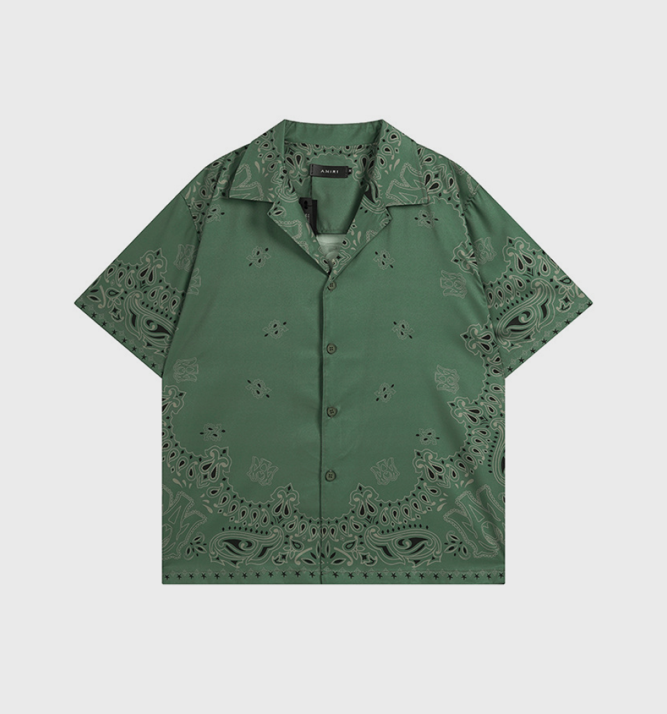 Cross-border Ethnic Flower Shirt ‘Green’ – Amiri